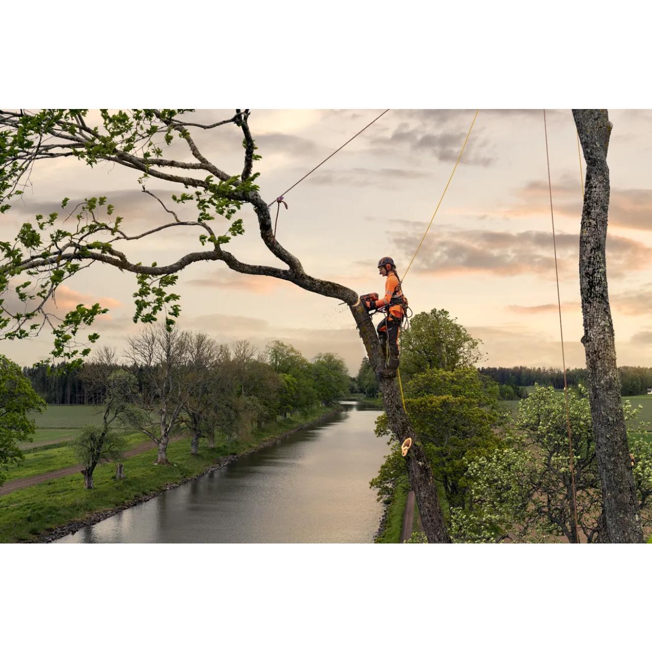 Die Husqvarna T540 XP® Mark III ist eine Benzin-Kettensäge mit oberem Handgriff und beeindruckendem Leistungs-Gewicht-Verhältnis. Sie ist ideal für Baumpfleger und professionelle Baumpflegeteams, die eine zuverlässige, leistungsstarke Top-Handle-Motorsäge suchen, die leicht zu manövrieren ist und ihre Arbeit stets gut erledigt. Der Benzinmotor der 40-ccm-Klasse sorgt in Verbindung mit der SP21G-Kette für eine hervorragende Schnittleistung mit schneller Beschleunigung für sichere und effiziente Arbeiten in der Baumkrone.