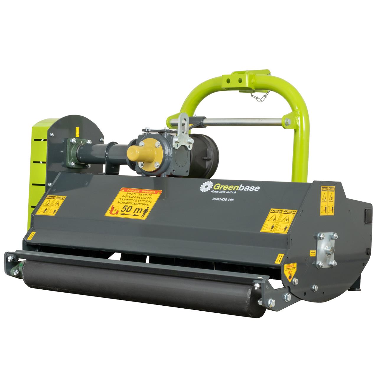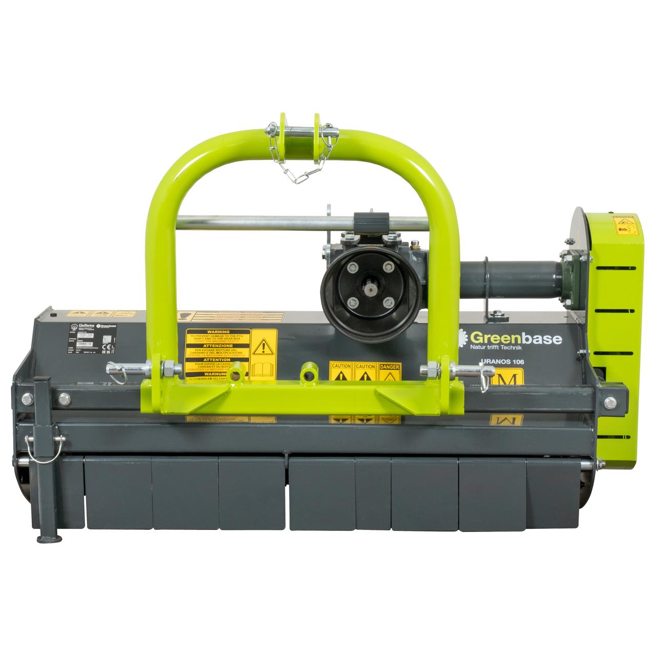 Dieser Schlegelmulcher ist für den Privatanwender wie auch für den Profi Einsatz in Baumschulen. Gärtnerei oder dem Weinbau bestens geeignet! Der Greenbase Schlegelmulcher Uranos verfügt über einen manuell verschiebbaren Dreipunktanbaubock. Ausgelegt ist der Schlegelmulcher für den Dreipunktanbau hinten in Kat. I oder II (Stufenbolzen) bei einem Zapfwellenantrieb schlepperseitig mit 540 U/min. Das Getriebe des Greenbase Schlegelmulcher ist selbstverständlich mit Freilauf ausgerüstet. Elektronisch feingewuchtete Schlegelwellen mit 10 mm Wandstärke für hohe Drehzahlen bei minimalsten Vibrationen.